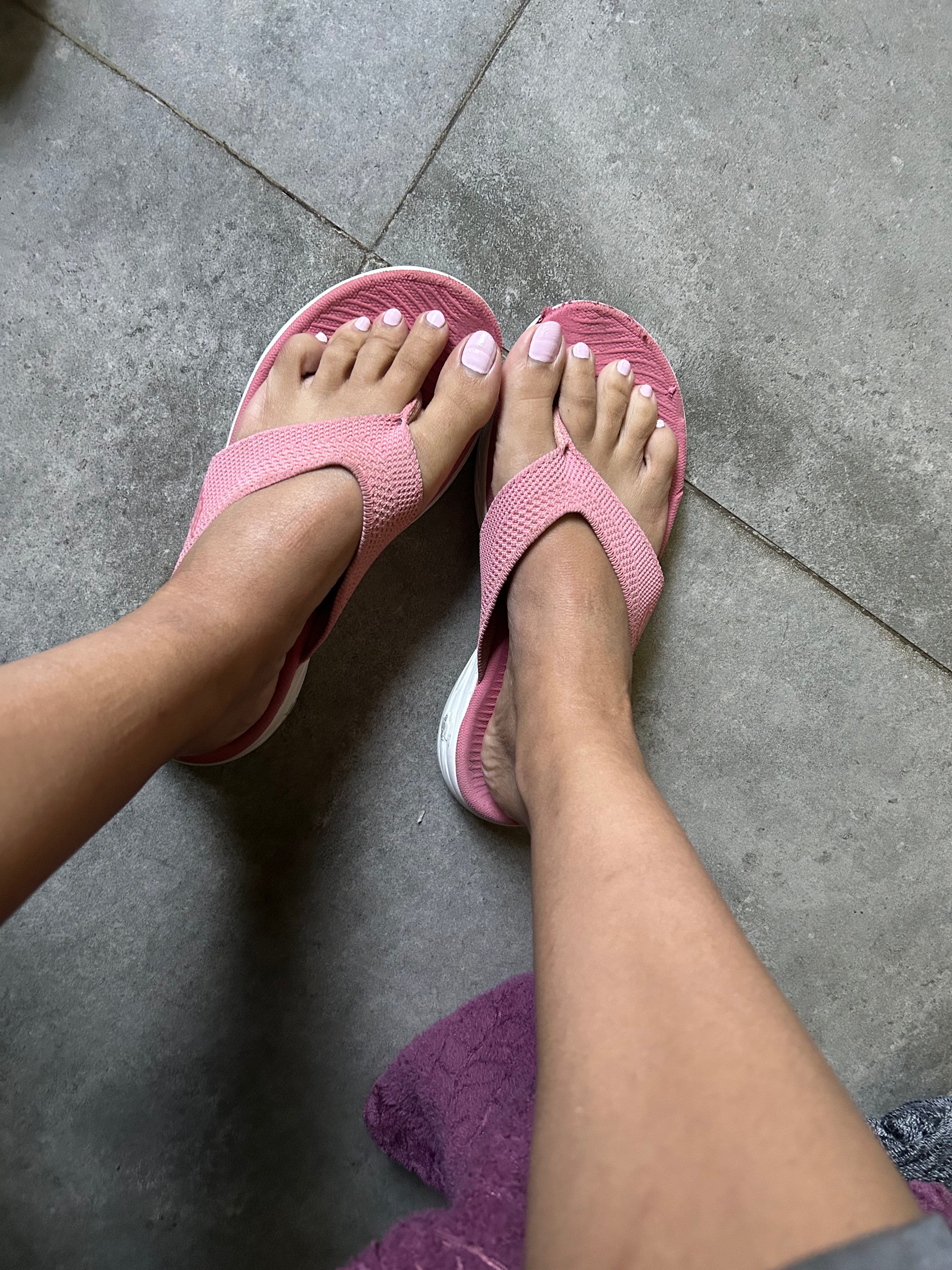 A few days ago I was rushing out the door and while my overall outfit was a solid 7/10, I forgot to change out of my bathroom slippers. These slippers are not nearly as glamorous as your Havianas or what have you— they are 2 sizes too big, orthopedic slides passed onto me after my late aunt. I wear them because they feel amazing on my acutely flatfooted arches but I am now sitting in my car with my foot on the brakes thinking, “hmmm what feels different on the pedal…”?